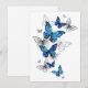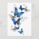 Flying Blue Butterflies morpho and white butterflies on a light abstract background. Morpho. Design with blue butterflies morpho.