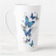 Flying Blue Butterflies morpho and white butterflies on a light abstract background. Morpho. Design with blue butterflies morpho.