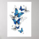 Flying Blue Butterflies morpho and white butterflies on a light abstract background. Morpho. Design with blue butterflies morpho.