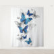 Flying Blue Butterflies morpho and white butterflies on a light abstract background. Morpho. Design with blue butterflies morpho.