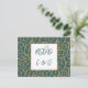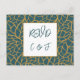 The Blue Foliage Pattern Wedding Menu Music RSVP Card completes your wedding stationery. It features a Aztek gold coloured foliage outline pattern against a police blue backdrop framing the title RSVP and the couple's initials. This Kindly Reply postcard with host address is part of the Abstract Foliage Wedding Invitation Suite collection. The template includes details for guests to RSVP by a specified date, declare the number of attendees, and note any dietary requirements. You can also add your favourite dance music title. Further, customise all colours by following the edit link. For more wedding planning ideas, visit www.KBMD3signs.com. For custom design enquiries or assistance, email info@KBMD3signs.com.