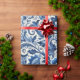 Blue Folk Floral Pattern Wrapping Paper