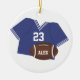 Easy to customise Blue Football Jersey and Football keepsake sports ornament that makes a great gift for the football player you know! You can add a name, number, and team name to this customisable keepsake football ornament.