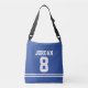 Blue Football Jersey with Custom Name and Number Cross Body Bag.