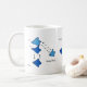 A blue footed bird dances the Cha Cha Cha for coffee. The original artwork was hand created by Sue Clancy using ink and gouache.