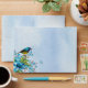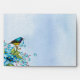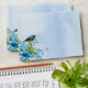Blue forget-me-not's on a soft pink-blue background and a king fisher