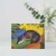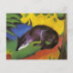 This design features an oil-on-canvas painting by the German Expressionist artist Franz Marc (1880–1916), who was a founding member of Der Blaue Reiter (The Blue Rider), a journal that later became synonymous with the circle of artists collaborating in it. The group also included the artist Paul Klee. Dating from 1911, the painting is one of Marc's earlier animal works featuring bright contrasting primary colours and a reclining fox in blue hues.