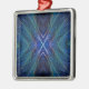 Blue Fractal Feather Design Metal Ornament