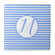 Blue Frame Monogram Letter M Stripes Ceramic Tile