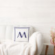 Stylish And Funky Monogram M Letter Dark Royal Navy Blue Frames Minimalistic Cushion / Throw Pillow to add to your home / office / business decor collection. A cool gift / present idea for all who love custom design items, positive vibes, organic theme, minimalism etc. Each side is different. Holidays, happy, baby shower, boy, girl, birthday etc. Change the background colour to suit your own needs, taste and style. Add your name / surname / company / brand name letter to personalise.