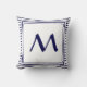 Stylish And Funky Monogram M Letter Dark Royal Navy Blue Frames And Stripes / Lines Minimalistic Cushion / Throw Pillow to add to your home / office / business decor collection. A cool gift / present idea for all who love custom design items, positive vibes, organic theme, minimalism etc. Each side is different. Holidays, happy, baby shower, boy, girl, birthday etc. Change the background colour to suit your own needs, taste and style. Add your name / surname / company / brand name letter to personalise.