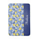 Blue French Country Lemon Pattern Monogram Name Bath Mat