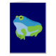 This colourful blue frog illustration features a giant fantasy cartoon frog with glossy marble green eyes, dark blue spots on his back and nimble green legs! This wildlife artwork is the perfect gift to buy for a frog lover, herpetologist and anyone who loves amphibians and animal vector art of the froggy variety!