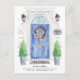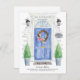 Announce your new address with our stylish announcement featuring a blue front door, welcome mat, slate sign, topiaries and a floral wreath set on a grey brick background.