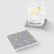 The coasters are gorgeous, a quality feel and heavy weight. They look like a precious archeological find. A rustic stone juxtaposed with a modern floral black and white print. I like the way the print goes slightly imperfect on the cut stone edges giving them a kind-of natural beauty.