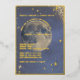 A real gold foil wedding Invitation comes to life with these blue celestial galaxy sky elements. Get ready for a personalised and enchanting celebration of love. Customise it with your wedding venues names, occasion, date and time. The background of this design is something between blue tones with stars, galaxy and moon, glitter. The real foil is changeable in gold, silver and rose gold. The foil has a frame, typography, some stars and are changing to your selected foil colour.