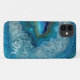 Classy iPhone 11 case, with graphics of a aqua blue and gold geode agate pattern. Personalise the one letter monogram as a great gift idea.