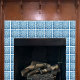 Blue geometric ceramic tile for fireplace, kitchen or bathroom.
