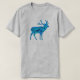 This design is the outline of a bull elk filled with coloured blue, cyan, and turquoise geometric shapes.