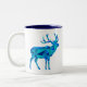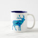 This design is the outline of a bull elk filled with coloured blue, cyan, and turquoise geometric shapes.