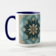 Blue Geometric Floral Mandala Mug – Teal & White