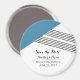 Modern and trendy Geometric Stripe Save the Date Magnet with a blue triangle and thinly striped accent. This simple yet elegant magnet is set up to be easily customised with your wedding information. Find more customisation options by clicking Customise It.