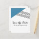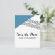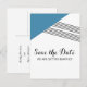 Modern and trendy Geometric Stripe Save the Date Postcard with a blue triangle and thinly striped accent. This simple yet elegant postcard is set up to be easily customised with your wedding information. Find more customisation options by clicking Customise It.