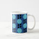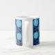Blue geometrical abstract modern mug pattern. Modern style, seventies abstract design for this colourful mug. Dots, circles, triangles and simple geometrical shapes. Modern blue gift idea for birthdays, mothers day, christmas, or for kitchen decoration. Simple blue mug for women, mother, wifes, friends, girls