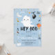 This invitation features cute halloween illustrations with faux gold glitter stars.