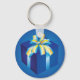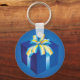 Blue Gift Box with Yellow and Aqua Ribbon Key Ring