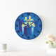 Blue Gift Box with Yellow and Aqua Ribbon Large Clock