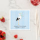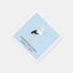 Sweet baby shower paper napkins done in a baby blue and white gingham check pattern, with cute graphics of a stork holding a blue baby bundle. Personalise the black text for your baby shower event. Coordinating paper plates and invitations are available.
