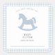 Blue and white gingham check personalised "for the library of" bookplate sticker with cute rocking horse silhouette.