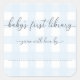 Blue Gingham Baby's First Library Bookplate Square Sticker