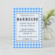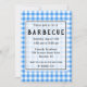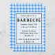 BBQ party invitations with a rustic blue gingham pattern background.Personalise with your backyard party details for a fun filled family get together.