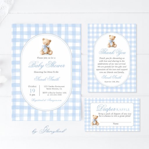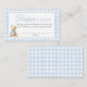 Blue Gingham Bear Baby shower Diaper Raffle Card