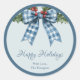 Blue Gingham Bow Happy Holidays Gift Sticker