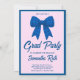 Blue Gingham Bow Photo Graduation Party Invitation