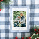 Create your own custom photo Christmas cards featuring one of your favourite family pictures alongside personalised minimalist typography name and year on a cute blue gingham plaid pattern background.