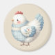 A soft cottagecore hen dressed in gentle blue gingham patterns, delicate floral accents, and sweet lace-inspired details creates a warm farmhouse mood filled with nostalgic charm. The pastel blues and creamy whites blend into a cozy, storybook style that feels whimsical, serene, and lovingly handcrafted, bringing a gentle folk aesthetic to life. AI generated artwork.