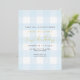 This invitation features a classic gingham design with real gold foil details. The script heading is an image that cannot be edited. All of the other text is fully editable. For more advanced customisation of this design, simply select the "Customise It" button above.