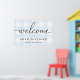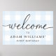 This welcome sign features a timeless gingham design with a modern calligraphy welcome heading. The sign can be customised to suit any event.