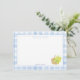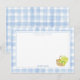 A classic gingham watercolor thank you card with a scalloped basket of lime green hydrangeas.
