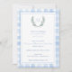 A classic gingham watercolor with a laurel crest for initial monogram. All wording can be changed to suit your event.