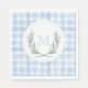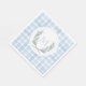 A classic blue gingham watercolor with a laurel crest for initial monogram.