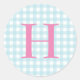 Blue Gingham Monogram Classic Round Sticker