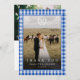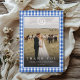 Express your gratitude in style with this charming gingham wedding thank you card. Featuring a classic blue gingham border and elegant monogram crest, the front showcases your favourite wedding photo with a timeless “Thank You” message. On the back, a second photo and personalised note allow you to share your heartfelt appreciation with family and friends.