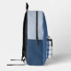 Playfully painted blue gingham plaid stripes pattern printed backpack with optional personalisation.