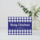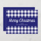 Blue Gingham Plaid Script Merry Christmas Postcard