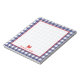A notepad featuring a blue gingham background. Illustration of a red crab at bottom. Personalise with your name under crab.